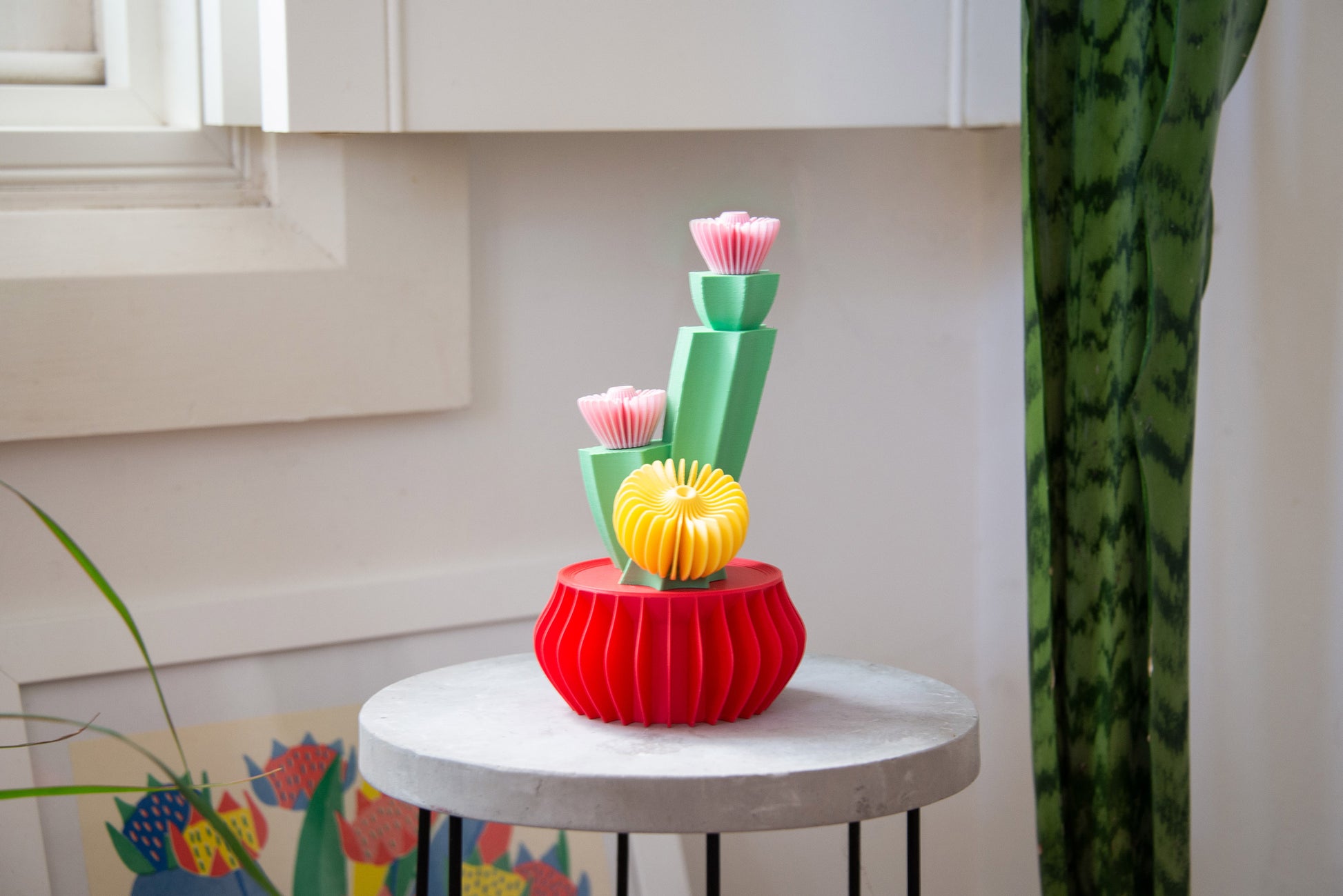 A succulent pot of cacti sculpture, 3D printed in a matte bio-plastic. A truly cute and unique gift for friends, family and co-workers. Guaranteed to brighten any room.Â