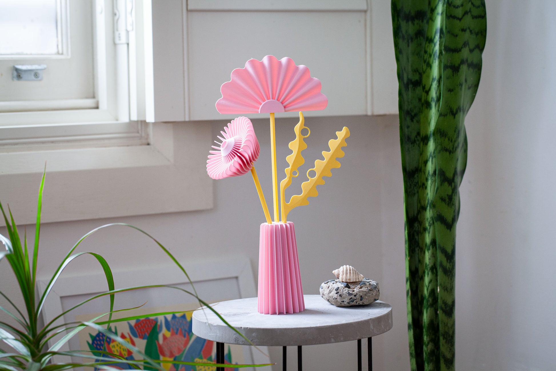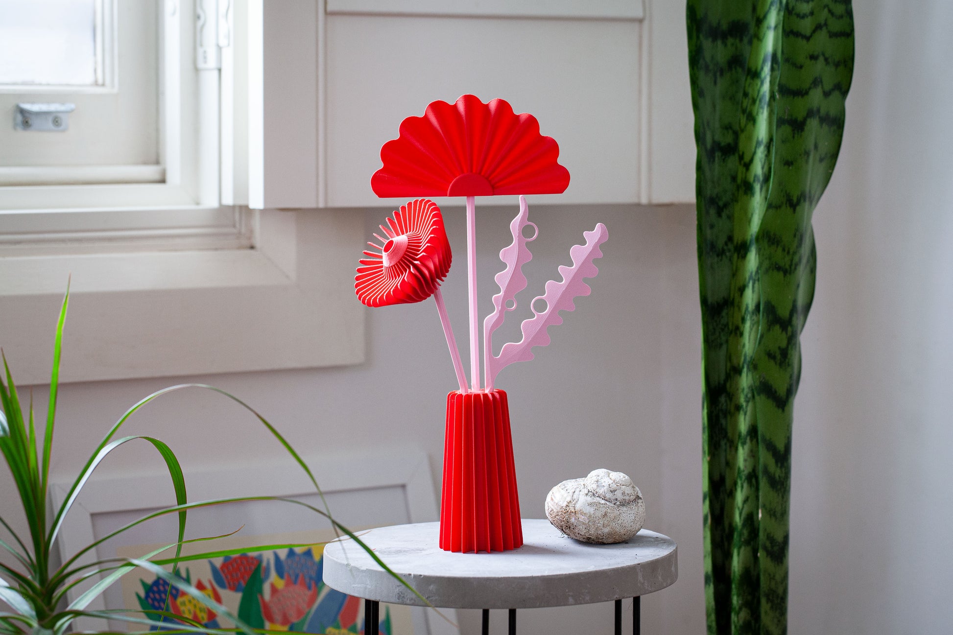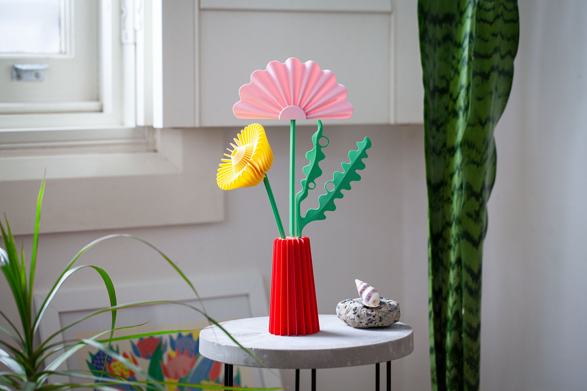 A sculptural bunch of flowers 3D printed in a matte bio-plastic. A truly cute and unique gift for friends, family and co-workers. Guaranteed to brighten any room.